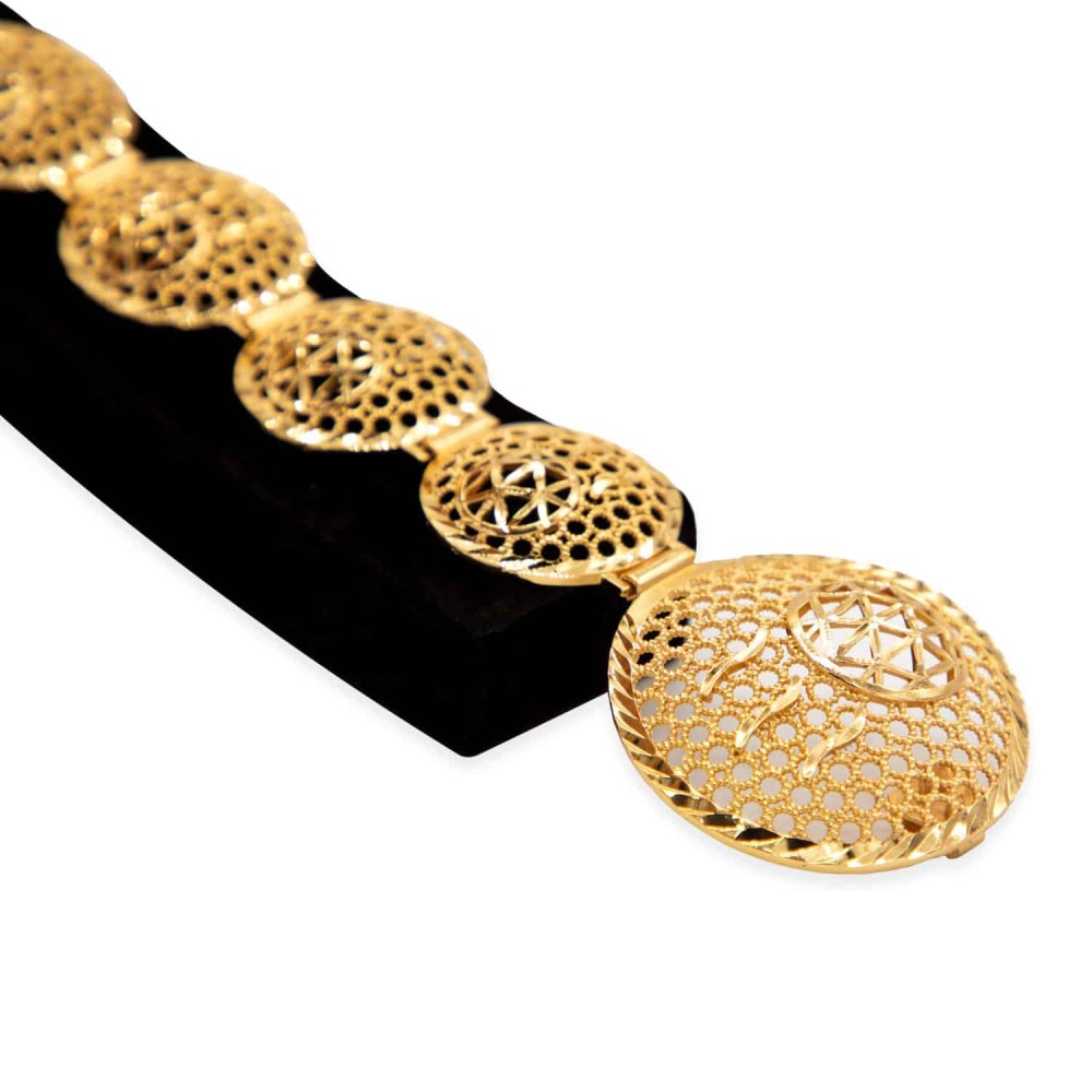 - يمتاز الحزام بلون ذهبي لامع يعكس الضوء بشكل جذاب ويجذب الأنظار إليك.